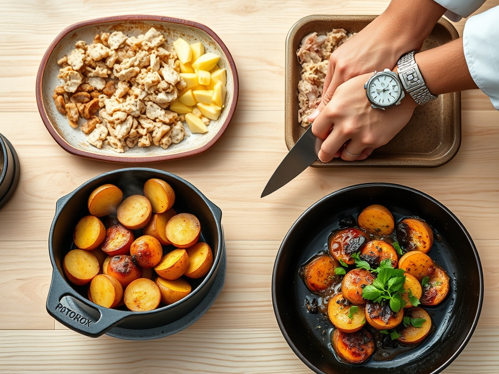 Efficiency in the kitchen is about "Chef's Flow." You should spend no more than 20 minutes on active prep. Use a mandoline to achieve paper-thin, translucent slices; this is the only way to ensure the heat penetrates the center of each stack simultaneously.